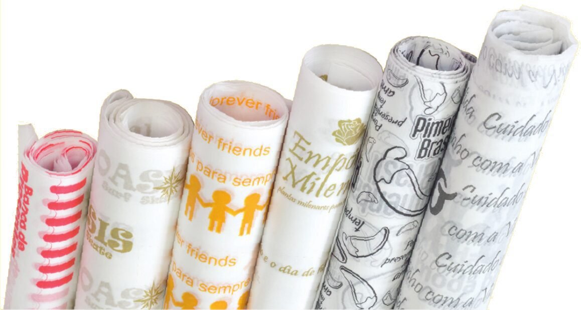Papéis para embrulho e papéis de seda, variedade de cores e opções de personalização